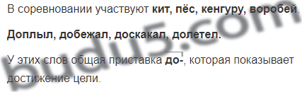 Проверь себя. Какие слова у тебя получились? У нас такие: доплыл, доскакал, долетел, добежал.