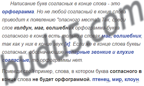 Написание букв согласных в конце слова - это ______________. Но не любой согласный в конце слова приводит к появлению "опасного места". Так, среди слов колдун, маг, волшебник орфограмма-буква согласного в конце есть только в словах ____________________________, так как у них в конце звук __. Если же в конце слова буквы согласных, обозначающие ______________________________________, ____________________ то орфограммы нет.