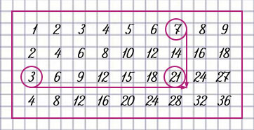 2. 1) Найди по таблице произведения: