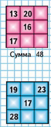Красный квадрат магический - каждая сумма равна 48.