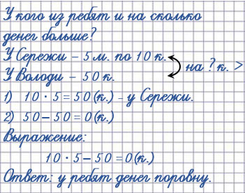Задаю вопрос: На сколько копеек больше у Сережи, чем у Володи?