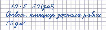 3. Высота зеркала прямоугольной формы 10 дм, а ширина 5 дм. Чему равна площадь зеркала?