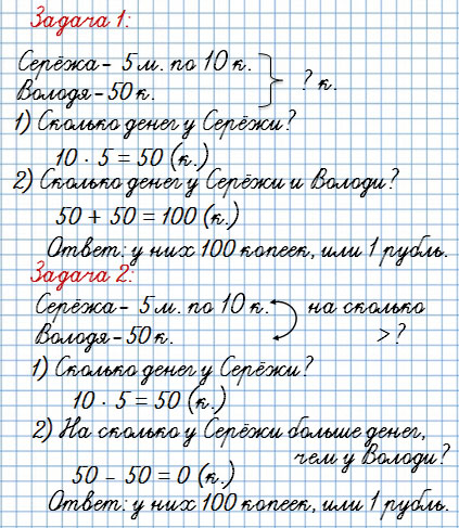 Одинаковые данные, поэтому одинаковые первые действия в решениях задач.