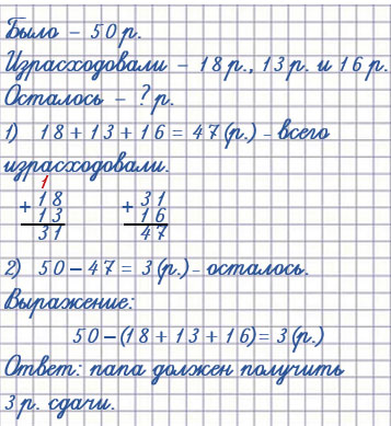 50 - (18 + 13 + 16) = 3 (р.)