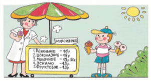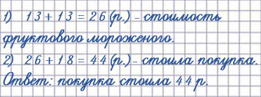 2) Мальчик купил 2 порции фруктового и 1 порцию шоколадного мороженого. Сколько стоила эта покупка?