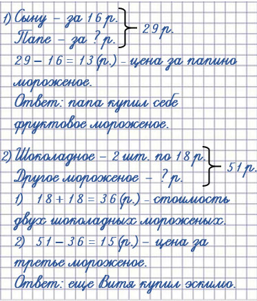 2. 1) Папа купил детям шоколадное, фруктовое и ванильное мороженое, по одному каждого сорта. Сколько сдачи он должен получить с 50 р.?