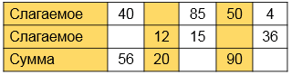 Повтори случаи табличного сложения.