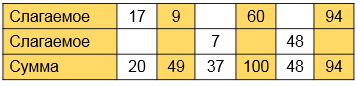 Читаю ответ: сумма равна 95.