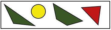Если фигура четырёхугольник, то то она зелёная и находится между кругом и красным треугольником. - обязательно уточняю, где он находится, потому что первая зелёная фигура - треугольник.