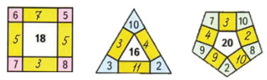Занимательные рамки - это такие рамки, у которых сумма чисел вдоль каждой стороны равна числу, стоящему в центре рамки.