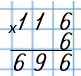 Умножаю сотни: 3 • 2 = 6. Пишу 6 под сотнями.