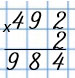 Умножаю десятки: 4 • 2 = 8. К 8 дес. прибавляю 1 дес., которые получены при умножении единиц: 8 + 1 = 9. Пишу 9 под десятками.