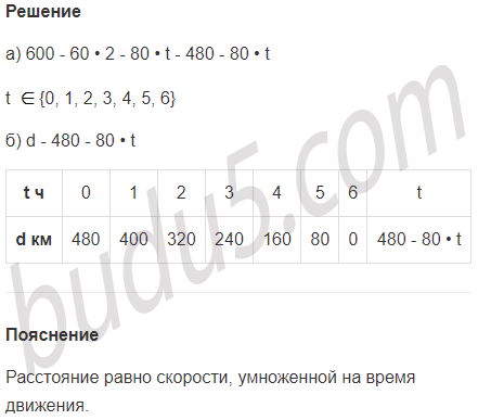 "Расстояние от Бреста до Киева примерно 600 км. Поезд ехал из Бреста в Киев сначала 2 ч со скоростью 60 км/ч, а потом t ч со скоростью 80 км/ч. Сколько километров ему осталось проехать"?