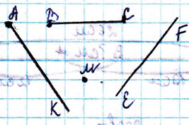 г) начерчен луч EF, а не прямая.