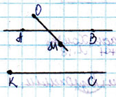 а) Отметь две точки А и В, проведи через них прямую. Начерти луч ОМ, пересекающий прямую АВ, и луч КС, её не пересекающий.
